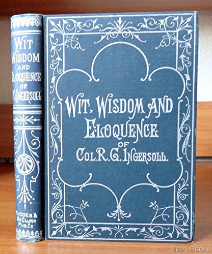1899. Rhodes & McClure Publishing Co., 336 pages. 1 lb 6 oz. (Dark Grey Boards with Silver Lettering & Design Front cover and Spine). Wit, Wisdom and Eloquence Of Col. R. G. Ingersoll by J. B. McClure (Editor) ,